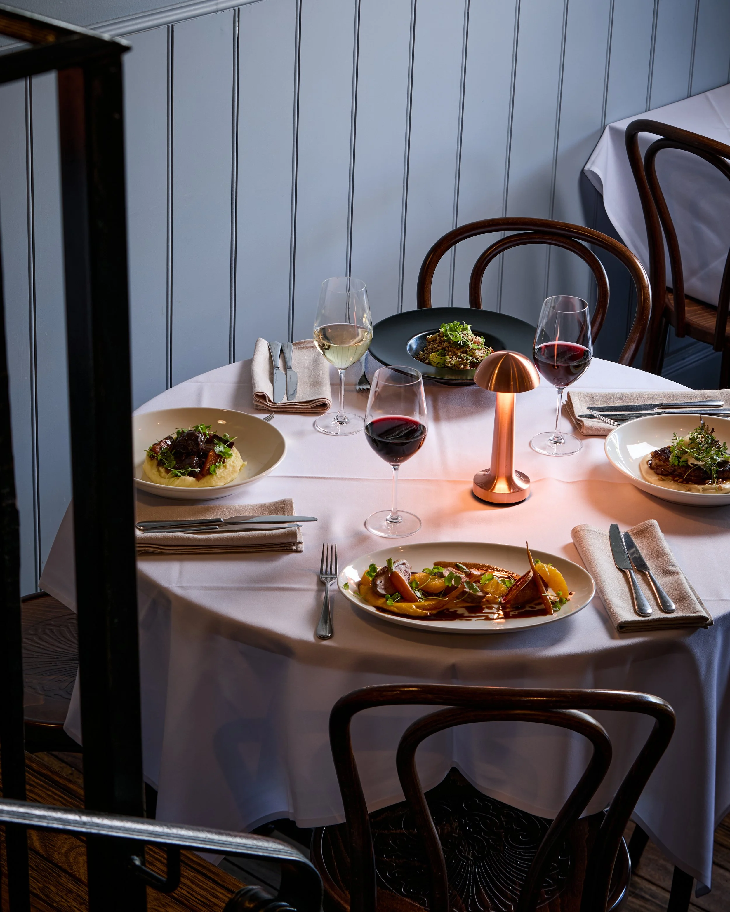 Outdoors, La Terrasse invites guests to sit among the red geraniums and soak up the neighbourhood charm. Savour a glass from our extensive wine list or enjoy something more substantial from our changing, seasonal menu.